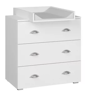Komoda MIA 80 cm z przewijakiem biały mat Komoda MIA to idealne rozwiązanie dla rodziców z małym dziecko. Komoda jest wyposażona w trzy pakowne szuflady oraz w wygodny i bezpieczny przewijak. Ustawiona w pokoju malucha znacznie ułatwi opiekę nad dzieckiem, gdyż miejsce do przewijania będzie zawsze pod ręką. Opis: Komoda wyposażona w trzy szuflady Komoda posiada montowany na blacie piankowy przewijak Przewijak jest bezpieczny i certyfikowany, można na nim kłaść już najmłodsze dzieci (0 - 12 miesięcy) Przewijak wyprofilowany, wypełniony miękką pianką, lekki, łatwy w czyszczeniu, wolny od ftalanów Kolorystyka: Biały mat Wykorzystane materiały: