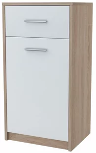 KOMODA BODO 1D1S Komoda wykonana jest z dobrej jakości płyty laminowanej, którą cechuje zwiększona odporność na zarysowania, wysoka odporność na ścieranie oraz powierzchnia odporna na wilgoć (możliwość ścierania wilgotną gąbką). Szuflada komody otwieraja się na metalowych prowadnicach rolkowych dzięki czemu w razie potrzeby można ją łatwo wyjąć. Komoda posiada jedne drzwiczki otwierane na prawo na metalowych zawiasach. W środku znajdują się 1 półka. CECHY: