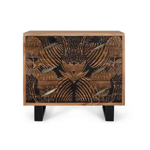 Komoda z 3 szufladami wykonana z litego drewna akacjowego w kolorze naturalnym i czarnym, z metalowymi nogami. ze względu na naturalne drewno, może zachować oryginalne sęki i usłojenie. wymiary frontu szuflady: 20 x 88 cm. wymiary wnętrza szuflady:
