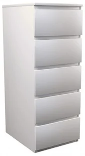 Liczy się także precyzja wykonania, dopracowanie każdego detalu Prezentujemy Ci zachwycającą komodę z pięcioma szufladami Luvia marki Elior. Produkty Elior charakteryzują się wyrazistym designem i dbałością o każdy szczegół mebla, a wdzięk i nowoczesność, jak również mocna i stabilna konstrukcja, to cechy najnowszego mebla Luvia. Użyta do jej produkcji laminowana płyta meblowa w kolorze białym została uszlachetniona cienkimi filmami melaminowymi. Posiada także specjalne włókna ułożone różnokierunkowo o strukturze sinusoidalnej, co zapewnia nadanie jej cech jakościowych oraz wytrzymałościowych. Zastosowana technologia sprzyja utrzymywaniu mebla w czystości.