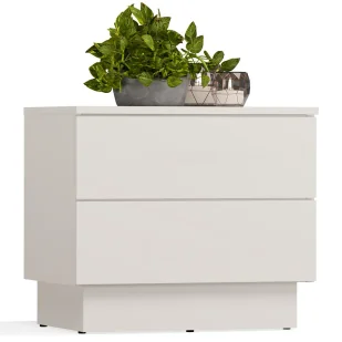 Neutralny kaszmir sprawia, że szafka staje się subtelnym akcentem, który nie dominuje, lecz dopełnia aranżację sypialni. Minimalizm w najlepszym wydaniu 2 praktyczne szuflady na podręczne akcesoria, elegancka kolorystyka kaszmiru, kompaktowy wymiar, idealny do każdej sypialni, uniwersalny charakter – pasuje zarówno do łóżek pojedynczych, jak i podwójnych, subtelny design podkreślający aranżację wnętrza. Styl, który nie przemija Płyta laminowana z powłoką melaminową, o gęstości do 800 kg/m³, zapewniająca wyjątkową odporność na uszkodzenia mechaniczne oraz odporność na wilgoć i czynniki chemiczne. Wysokogatunkowe tworzywo polimerowe wyróżniające się wysoką odpornością na rozciąganie do 70 MPa oraz łatwością do utrzymania w czystości. Wymiary: Szerokość: 55 cm, Wysokość: