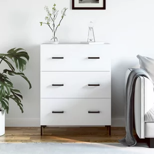 Ta klasyczna szafka cechuje się ponadczasową estetyką, dzięki czemu będzie doskonałym dodatkiem do Twojego domu. Solidny materiał: tworzywo drewnopochodne cechuje się wyjątkową jakością i gładką powierzchnią, a także wytrzymałością, stabilnością i odpornością na wilgoć. Sporo miejsca do przechowywania: komoda z 3 szufladami zapewnia mnóstwo miejsca do przechowywania i uporządkowania różnych rzeczy codziennego użytku w zasięgu ręki.