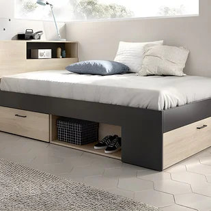Dzięki zagłówkom z ze skrzynią , 2 szufladom, 2 wnękom bocznym i skrzyniaa łóżko LEANDRE łączy przyjemne z pożytecznym, umożliwiając przechowywanie książek, piżamy, ubrań i innych rzeczy.