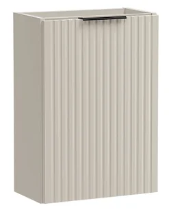 Front: wysokogatunkowa, dekoracyjnie frezowana płyta MDF z efektem 3D w modnym kolorze Cashmere. Obrzeża: specjalistyczne tworzywo ABS, cechujące się ponadprzeciętną odpornością na zarysowania i uszkodzenia mechaniczne. Detale: fronty z profesjonalnym systemem cichego domykania oraz 3 eleganckie kolory uchwytów do wyboru. Poniżej prezentujemy przykładową wizualizację wnętrza z wykorzystaniem mebli z kolekcji : Wymiary: szerokość: 40 cm wysokość: