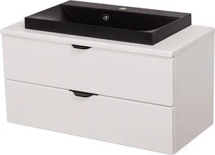 Biała szafka łazienkowa z czarną umywalką 80 cm Liv Victa VIC-B-U80/39/2 + LivC