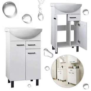 Biała Szafka Stojąca z Umywalką do Łazienki 50 Czarne Uchwyty Cała Lakier