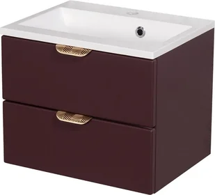 Szafka łazienkowa burgund 50 cm Magnolia z białą umywalką dolomitową i złotymi uchwytami to elegancki wybór do małej łazienki. Styl glamour, matowe wykończenie, ciche domykanie i odporność na wilgoć – idealna funkcjonalność w luksusowej formie.