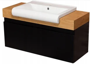Ekskluzywna szafka łazienkowa 100 cm w czarnym kolorze wraz z blatem w kolorze dębu naturalnego oraz białą ceramiczną umywalką z serii CASSINI.