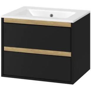 Tuto szafka wisząca 60 cm podumywalkowa 2 szuflady, czarny mat/dąb