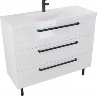 Szafka Stojąca Z Umywalką ATH 100 cm - Biały Wysoki Połysk - Uchwyty Czarne Matowe