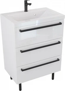 Szafka Stojąca Z Umywalką ATH 60 cm - Biały Wysoki Połysk - Uchwyty Czarne Matowe
