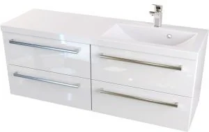 Szafka Wisząca Z Umywalką ATH 120 cm S Prawa - Biały Wysoki Połysk - Uchwyty Stal Szczotkowana