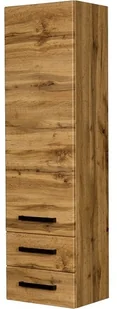Regał łazienkowy loftowy kolor dębu 40x144cm z 2 szufladami, Gante Fokus Loft Wysoki, dwuszufladowy regał łazienkowy w kolorze dębu naturalnego z serii FOKUS LOFT . Regał wyposażony jest w system cichego domykania , który sprawia, że drzwiczki oraz szuflada w ostatniej fazie zamykania zwalniają, aby niemal bezgłośnie się zamknąć. Linia mebli łazienkowych Focus Loft to propozycja dla inwestorów ceniących sobie nowoczesny styl. Nawiązująca do stylistyki loftowej połączenia praktyczności i prostoty charakterystycznego dla wczesnej epoki industrialnej świetnie sprawdza się zarówno w małych łazienkach, jak i pokojach kąpielowych. Płyty meblowe zostały wykończone w barwie naturalnego dębu: