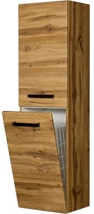 Regał łazienkowy loftowy kolor dębu 40x144cm z koszem, Gante Fokus Loft Wysoki regał łazienkowy w kolorze dębu naturalnego z serii FOKUS LOFT . Regał w dolnej części wyposażony jest w kosz na bieliznę. Regał wyposażony jest w system cichego domykania , który sprawia, że drzwiczki oraz szuflada w ostatniej fazie zamykania zwalniają, aby niemal bezgłośnie się zamknąć. Linia mebli łazienkowych Focus Loft to propozycja dla inwestorów ceniących sobie nowoczesny styl. Nawiązująca do stylistyki loftowej połączenia praktyczności i prostoty charakterystycznego dla wczesnej epoki industrialnej świetnie sprawdza się zarówno w małych łazienkach, jak i pokojach kąpielowych.