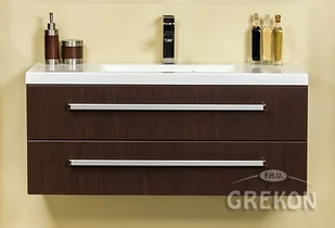 Szafka łazienkowa wisząca z umywalką o szerokosci 100 cm. Zestaw z dolomitową umywalką - meble łazienkowe w kolorze Wenge mat seria Fokus W Gante.