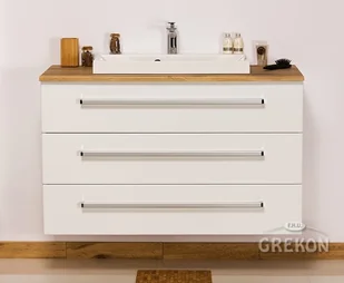 Szafka łazienkowa wisząca z umywalką o szerokości 100 cm. Zestaw z dolomitową umywalką - meble wykonane są w kolorze białym seria Fokus B Gante.