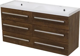 Nowoczesna szafka łazienkowa wraz z prostokątną, dolomitową umywalką z serii FOKUS w kolorze antycznego drewna rozmiar 120 cm.