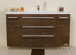 Nowoczesna szafka łazienkowa wraz z prostokątną, dolomitową umywalką z serii FOKUS w kolorze antycznego drewna rozmiar 140 cm.