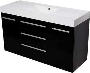 Szafka łazienkowa wisząca z umywalką o szerokosci 140 cm. Zestaw z dolomitową umywalką - meble łazienkowe wykonane są w kolorze czarnym seria Fokus C Gante.