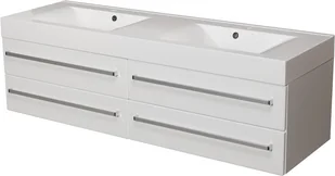 Szafka łazienkowa wisząca z umywalką o szerokości 160 cm. Zestaw z dolomitową umywalką - meble wykonane są w kolorze białym seria Fokus B Gante.