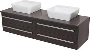 Szafka łazienkowa wisząca o szerokosci 160 cm. Zestaw z dolomitową umywalką - meble wykonane są w kolorze szarym.