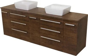Nowoczesna szafka łazienkowa wraz z prostokątną, dolomitową umywalką z serii FOKUS w kolorze antycznego drewna rozmiar 210 cm.
