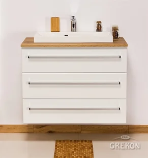 Szafka łazienkowa wisząca z umywalką o szerokości 80 cm. Zestaw z dolomitową umywalką - meble wykonane są w kolorze białym seria Fokus B Gante.