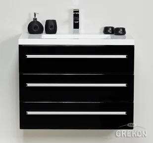 Szafka łazienkowa wisząca z umywalką o szerokosci 80 cm. Zestaw z dolomitową umywalką - meble łazienkowe wykonane są w kolorze czarnym seria Fokus C Gante.