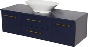 Szafka wisząca z umywalką nablatową 140 cm w kolorze granatowy mat.