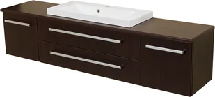 Szafka łazienkowa wisząca z umywalką o szerokosci 180 cm. Zestaw z dolomitową umywalką - meble łazienkowe w kolorze Wenge mat seria Fokus W Gante.