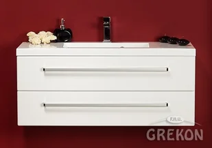 Szafka łazienkowa wisząca z umywalką o szerokosci 100 cm. Zestaw z dolomitową umywalką - meble wykonane są w kolorze białym seria Fokus B Gante.