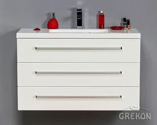 Szafka łazienkowa wisząca z umywalką o szerokosci 100 cm. Zestaw z dolomitową umywalką - meble wykonane są w kolorze białym seria Fokus B Gante.