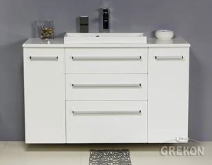Szafka łazienkowa wisząca z umywalką o szerokosci 120 cm. Zestaw z dolomitową umywalką - meble wykonane są w kolorze białym seria Fokus B Gante.
