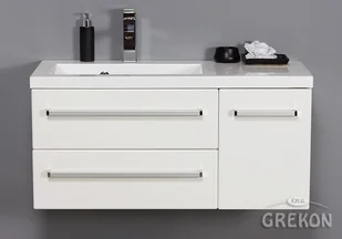 Szafka łazienkowa wisząca z umywalką o szerokosci 90 cm. Zestaw z dolomitową umywalką - meble wykonane są w kolorze białym seria Fokus B Gante.