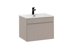 Kolekcja Iconic Cashmere - Szafka 60 cm z umywalką KOLEKCJA ICONIC CASHMERE Kolekcja ICONIC CASHMERE to wyjątkowy projekt, który wyróżnia się zastosowaniem pionowych frezowań we frontach. Efekt ryflowania wprowadza do wnętrza łazienki niezwykły ruch i płynność, tworząc wyjątkową estetykę. Jednym z najbardziej atrakcyjnych elementów tej kolekcji jest wszechstronny efekt wzorniczy, który przyciąga uwagę i dodaje charakteru każdemu wnętrzu. Ryflowane powierzchnie mebli stanowią zarówno element dekoracyjny, jak i funkcjonalny, podkreślając nowoczesny design kolekcji. Kolekcja ICONIC CASHMERE została stworzona w odpowiedzi na zmieniające się trendy oraz rosnące potrzeby wizualne klientów, którzy poszukują coraz bardziej wyszukanych rozwiązań.
