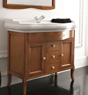 Kerasan to włoski producent ceramiki, który na rynku istnieje już od 1960 roku. Firma specjalizuje się w produkcji ceramiki łazienkowej takiej jak umywalki, miski WC, kompakty WC, bidety itp. Kolekcja Retro to klasyczna i wyrafinowana linia ceramiki łazienkowej, która jest w stanie harmonijnie dopasować się do najbardziej nowoczesnych środowisk dzięki nowej wersji podwieszanych misek WC i bidetów oraz trzech wersji kolorystycznych: oprócz standardowego koloru białego, są również dostępne polerowany czarny i czarny mat. Szafka pod umywalkę Kerasan RETRO, 3 szuflady, 2 drzwiczek, 100 cm Orzech Włoski (Walnut), 734740 Opis produktu: