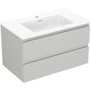 Mexen Rivel szafka łazienkowa 80 cm z umywalką Otis, 2 szuflady, ryflowana , szara mat/biała mat - 91A20-08047-2-BFF62-W18M01