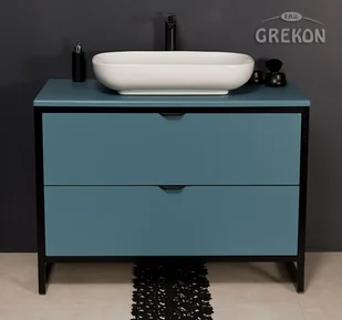 Szafka łazienkowa w niebieskim, matowym kolorze z serii NEW YORK. Stelaż wykonany z aluminium malowany proszkowo na czarny mat.