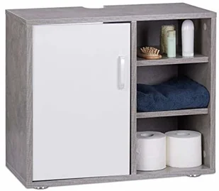 Szukasz stylowej szafki podumywalkowej do swojej łazienki? Ta jednodrzwiowa szafka podumywalkowa jest niezawodnym pomocnikiem, jeśli chcesz elegancko ukryć różne przybory łazienkowe przed ciekawskimi spojrzeniami w łazience. Wnęka na syfon umożliwia umieszczenie szafki łazienkowej pod standardowymi umywalkami. Oprócz dużego przedziału w drzwiach, szafka podumywalkowa posiada również 3 otwarte półki. Są one idealne na przybory łazienkowe, które muszą być w zasięgu ręki, takie jak papier toaletowy lub ręczniki. Szafkapodumywalkowa w szczegółach - Wymiary całkowite wys.