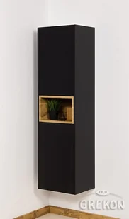 Nowoczesny, bardzo ekskluzywny regał łazienkowy z serii Space w czarnym, matowym kolorze ze wstawką w kolorze naturalnego drewna.