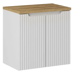 Szafka łazienkowa NOVA 60 cm biała z blatem dąb wisząca ryflowane fronty 2 drzwi