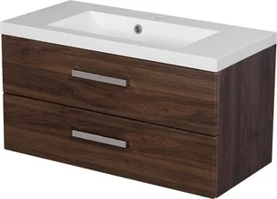 Szafka łazienkowa Fokus New 80 cm w odcieniu orzecha z białą umywalką dolomitową. Trzy pojemne szuflady z systemem cichego domykania, korpus MDF odporny na wilgoć i eleganckie srebrne uchwyty. Idealna do stylowych i funkcjonalnych łazienek.