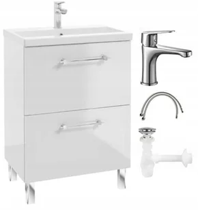 DomoDomo szafka łazienkowa z baterią umywalkową i syfonem 60x80cm biała błyszcząca stojąca