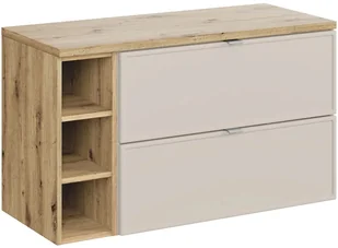 Szafka pod umywalkę nablatową BELLA CASHMERE 80cm kaszmir/dąb artisan - zestaw 100 cm z regałem i blatem