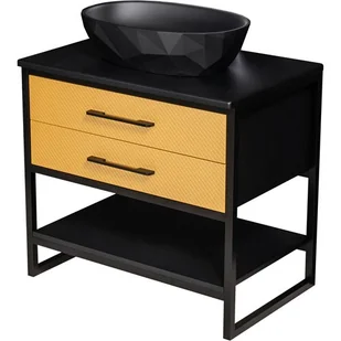 Szafka łazienkowa 80 cm New York Gold w matowej czerni z elegancką, czarną umywalką i złotymi frontami to idealne połączenie loftowego stylu z nutą glamour. Aluminiowy stelaż, system cichego domykania i pojemne szuflady gwarantują komfort i trwałość.