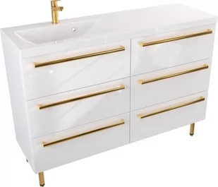 Szafka Stojąca Z Umywalką ATH 120 cm S Lewa - Biały Wysoki Połysk - Uchwyty Złote Polerowane