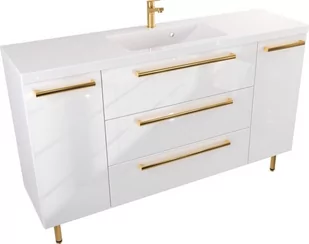 Szafka Stojąca Z Umywalką ATH 140 cm D - Biały Wysoki Połysk - Uchwyty Złote Polerowane