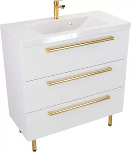 Szafka Stojąca Z Umywalką ATH 80 cm - Biały Mat - Uchwyty Złote Polerowane
