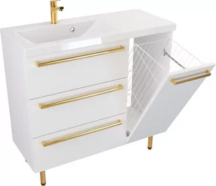 Szafka Stojąca Z Umywalką ATH 90 cm K Lewa - Biały Mat - Uchwyty Złote Polerowane