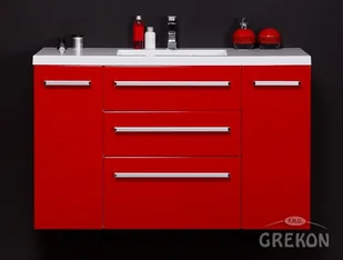Szafka łazienkowa wisząca z umywalką o szerokosci 120 cm. Zestaw z dolomitową umywalką - meble łazienkowe wykonane są w kolorze czerwonym seria Fokus CZ Gante.
